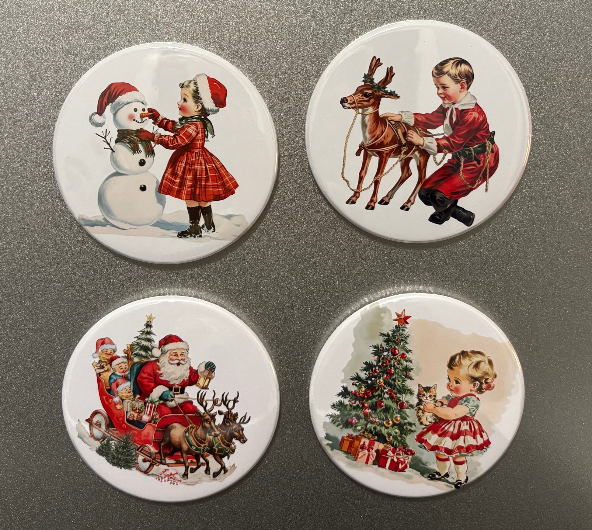 4 magnet set. 3" Round. Christmas Magnets Small Business Saturday SALE!!! $10.00