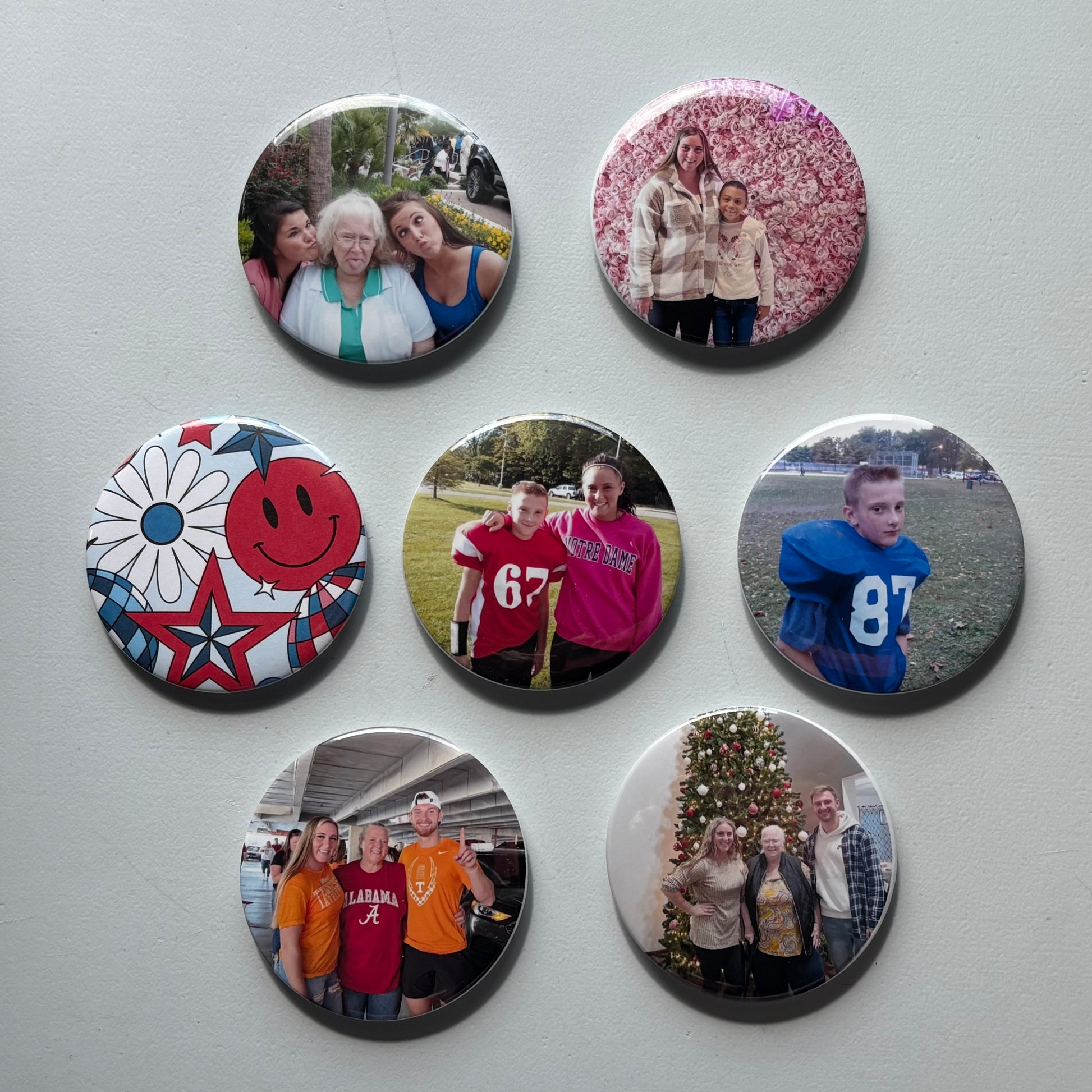 Turn your memories into stunning keepsakes. Your favorite moments displayed with our custom photo buttons! Whether it’s family photos, cherished vacations, or special occasions. Perfect for your fridge, workspace, or gifting to loved ones.